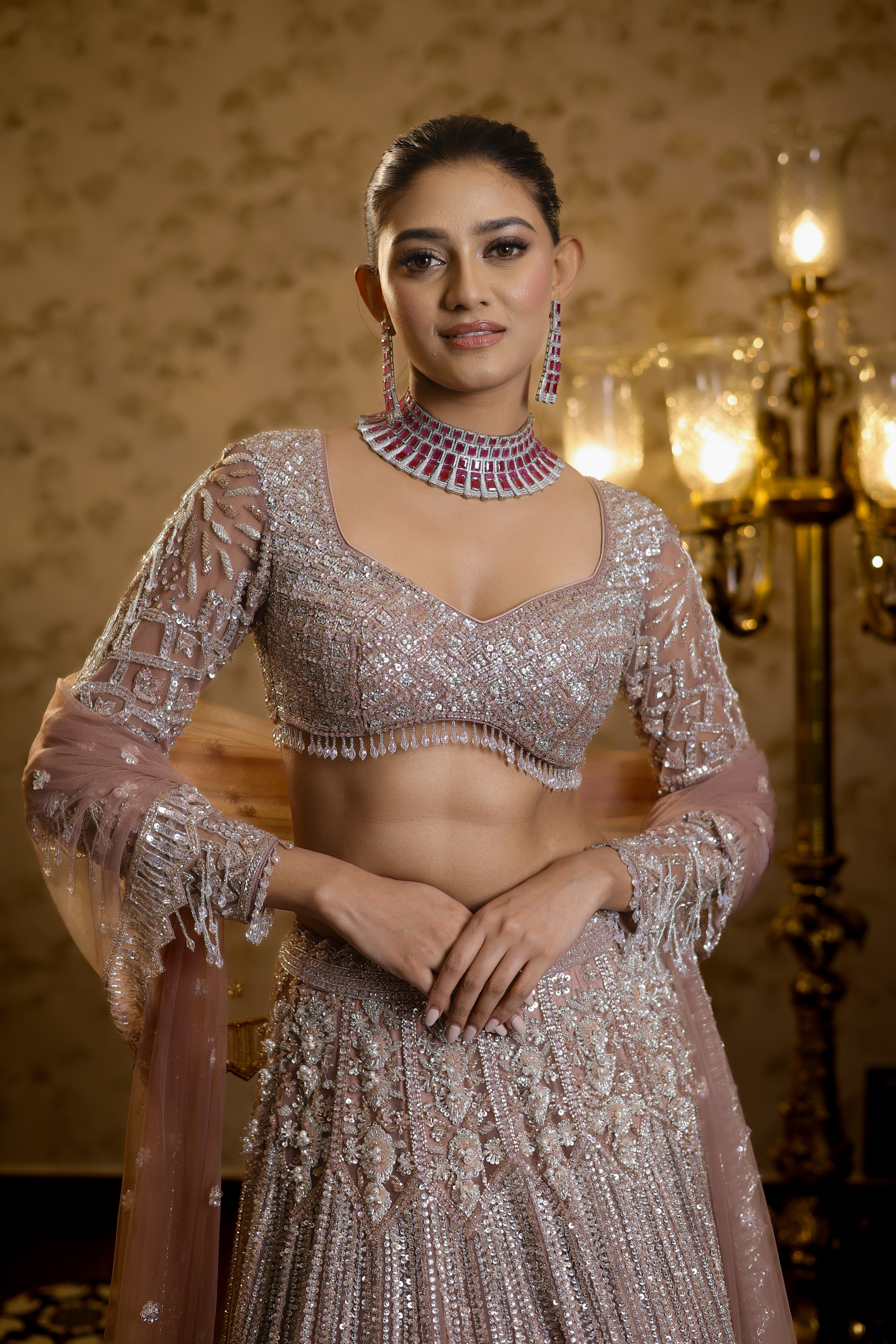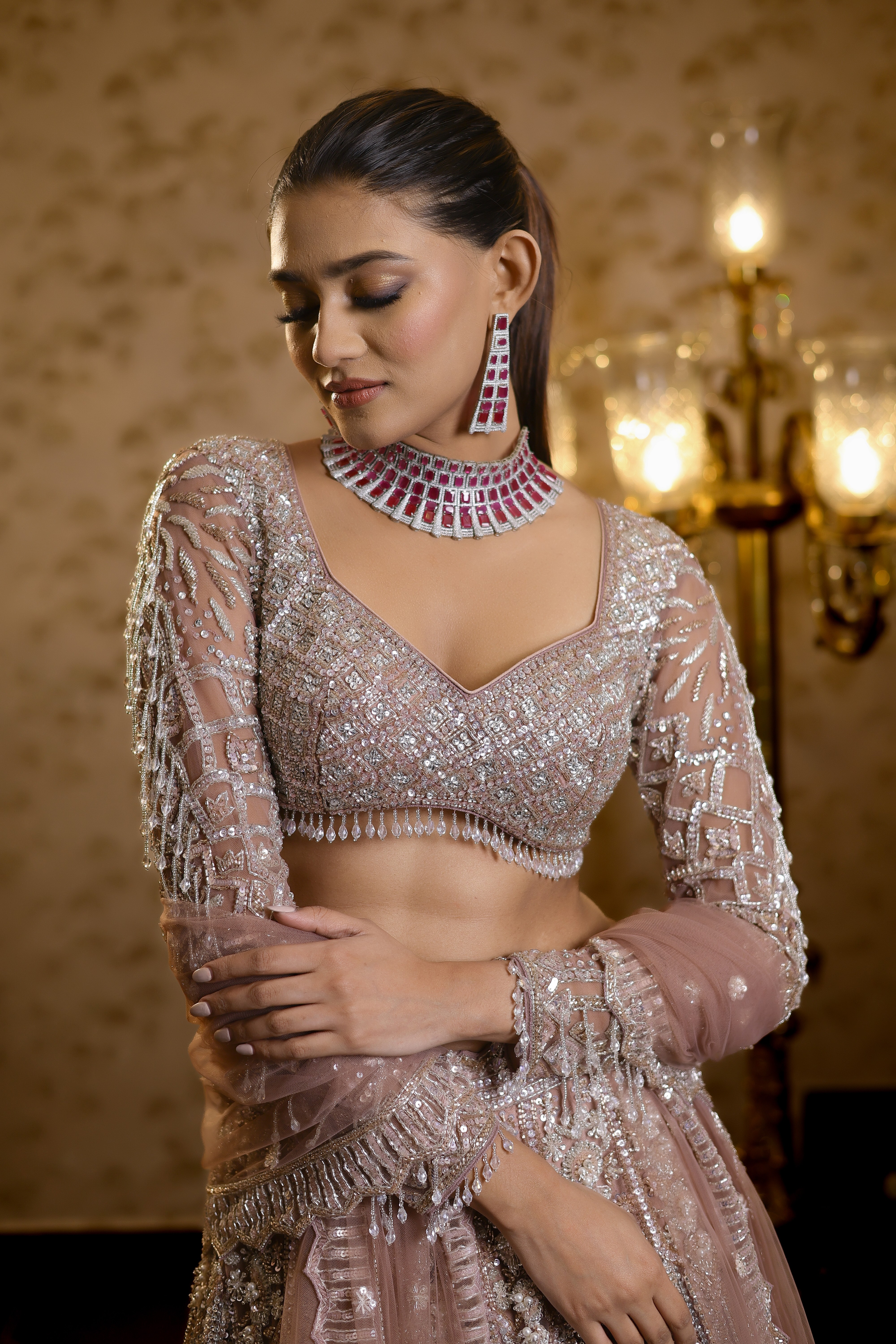 • Customisation : Each outfit is specially handcrafted for you by our team of artisans : one stitch, one bead at a time. We are happy to customize the colour, sleeves, neckline and size to your requirement.