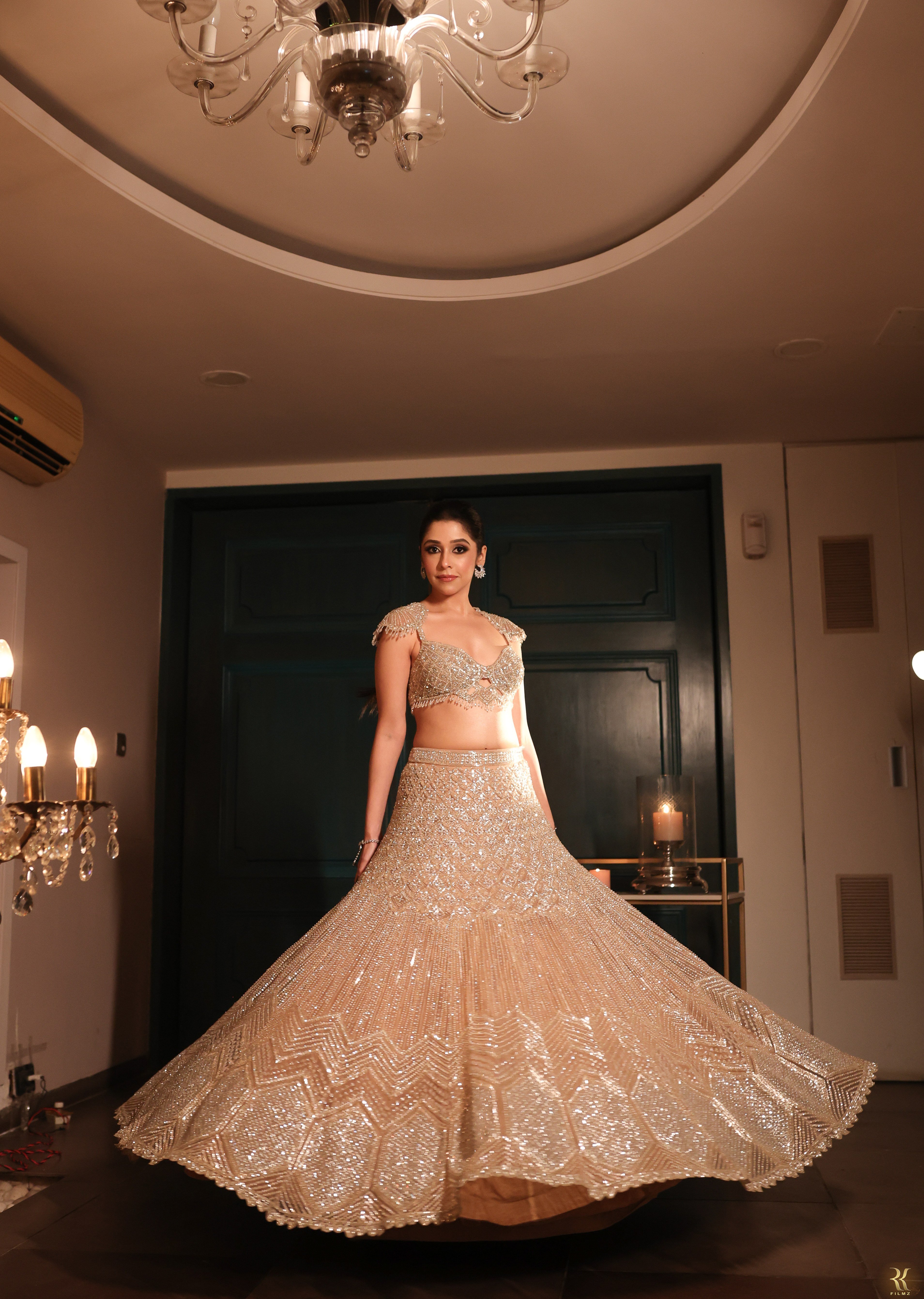 • Customisation : Each outfit is specially handcrafted for you by our team of artisans : one stitch, one bead at a time. We are happy to customize the colour, sleeves, neckline and size to your requirement.