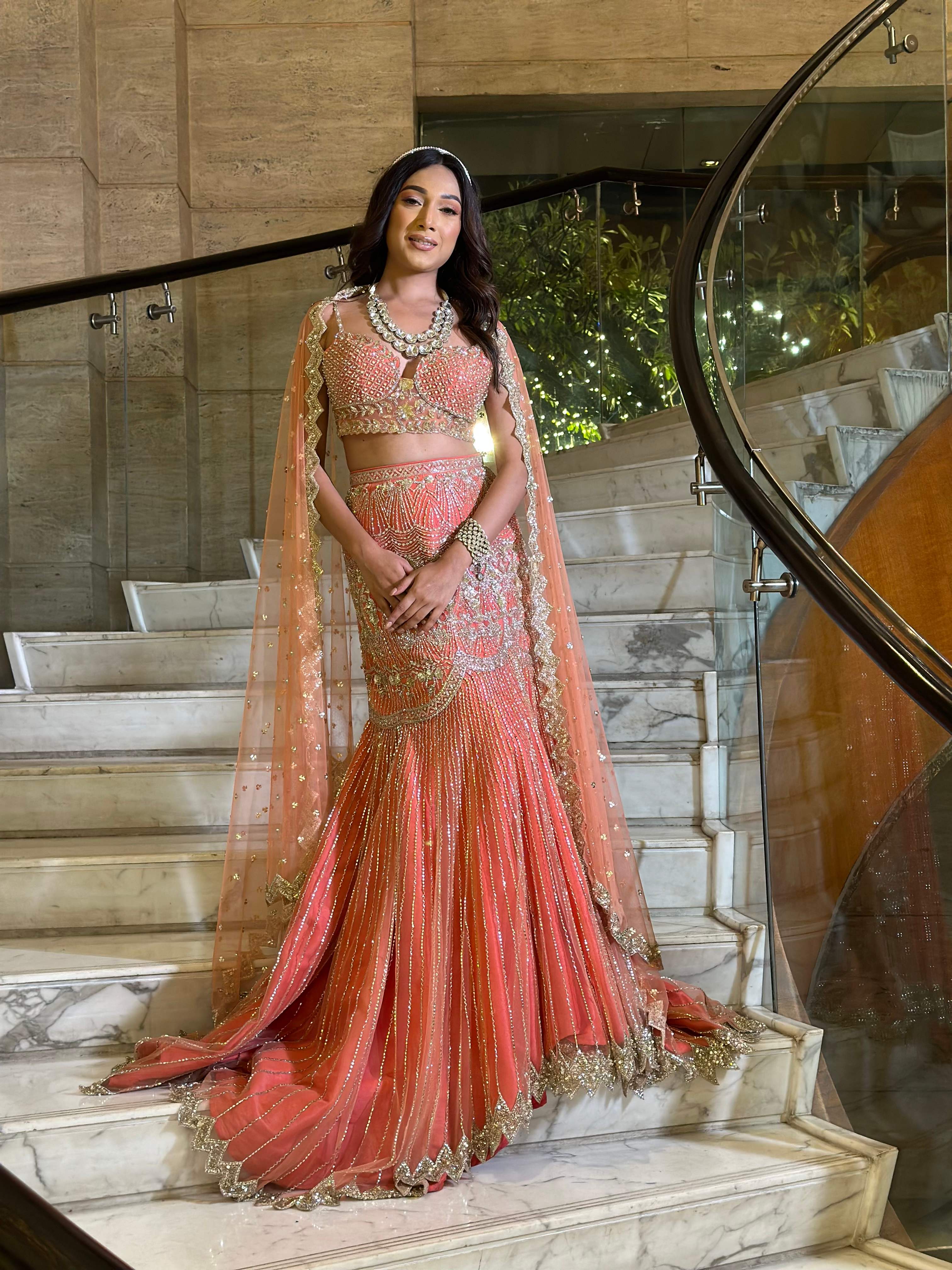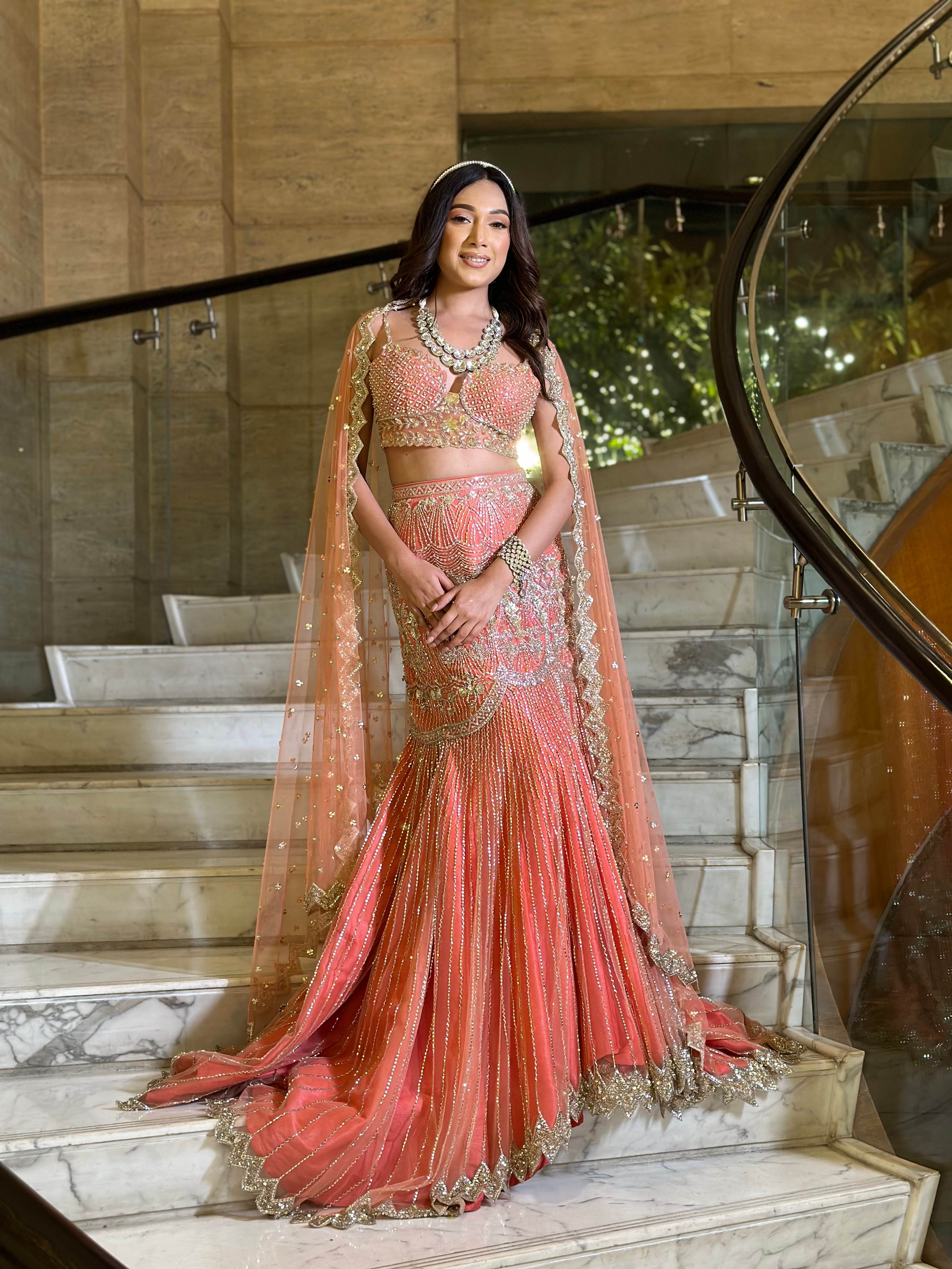 Coral Fishcut Lehenga
