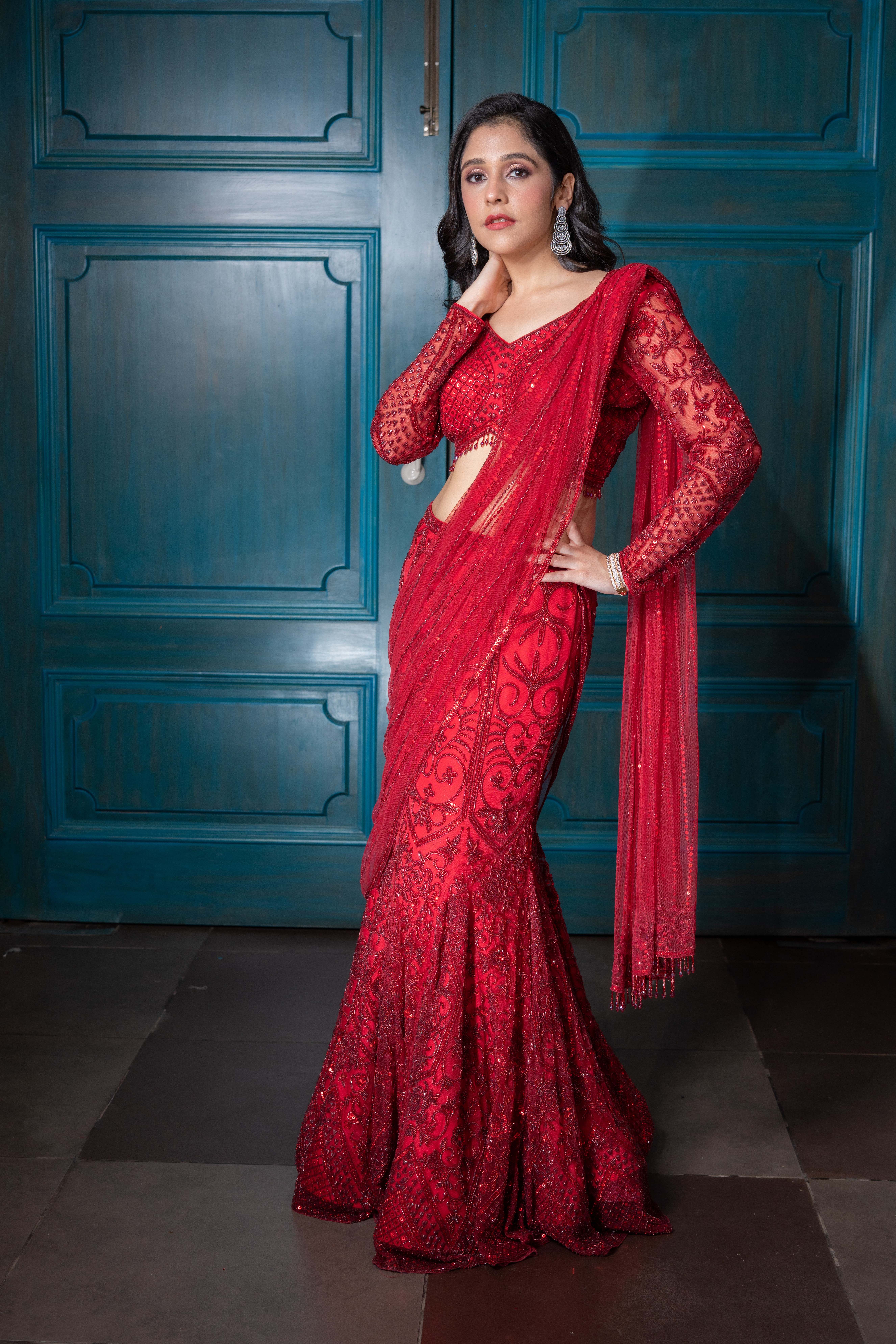 Deep Red Pre-Draped Saree