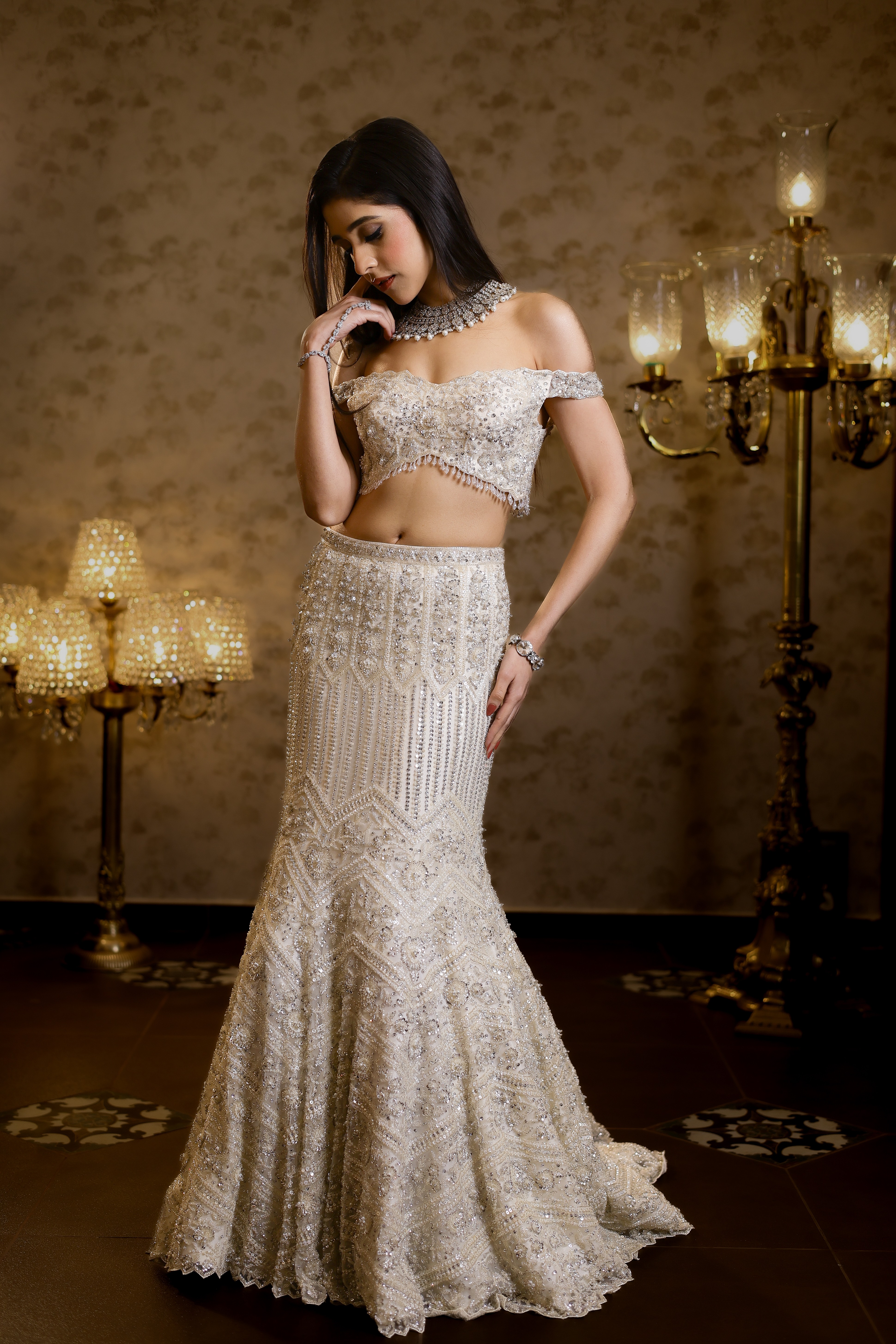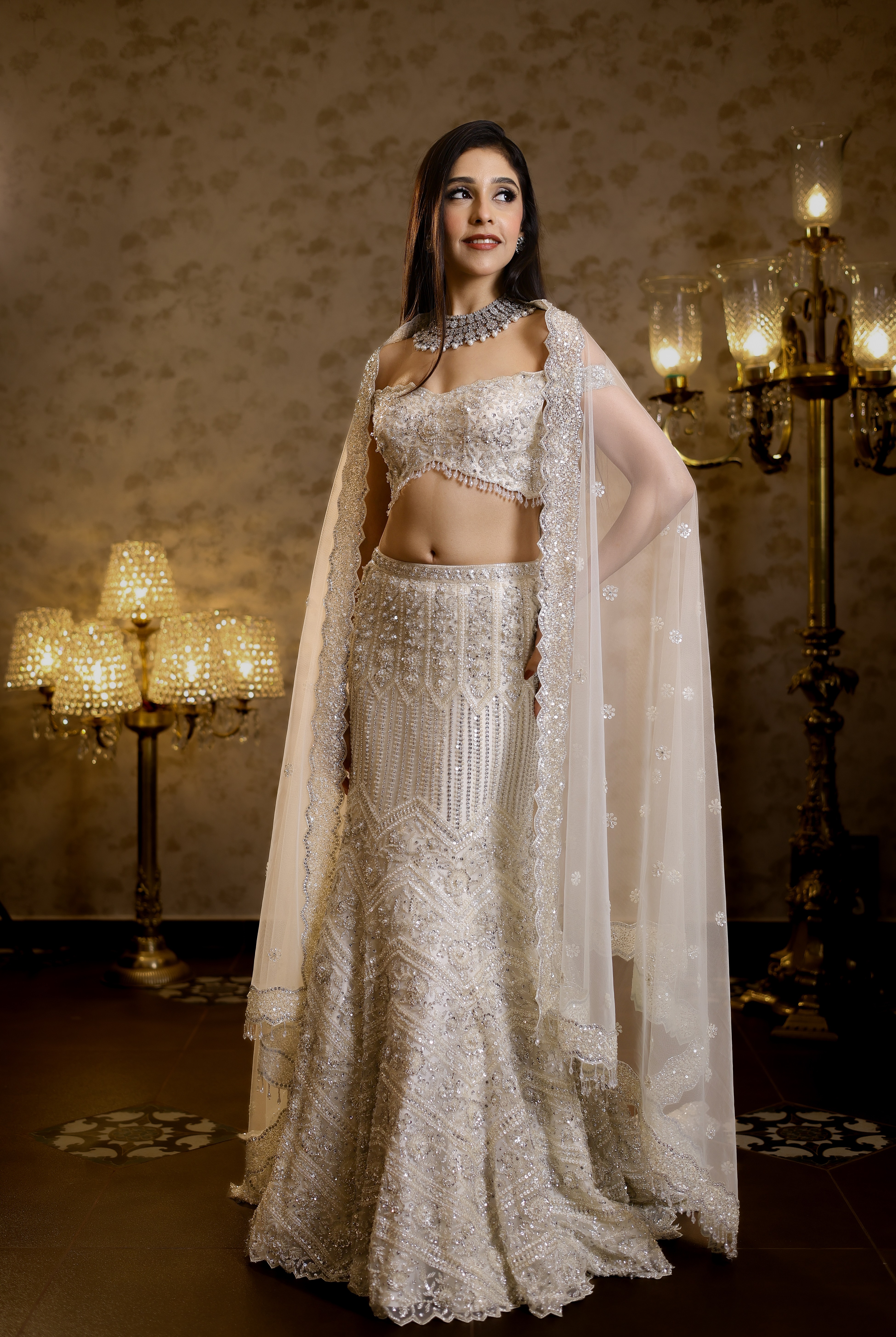 Rena Ivory Fishcut Lehenga