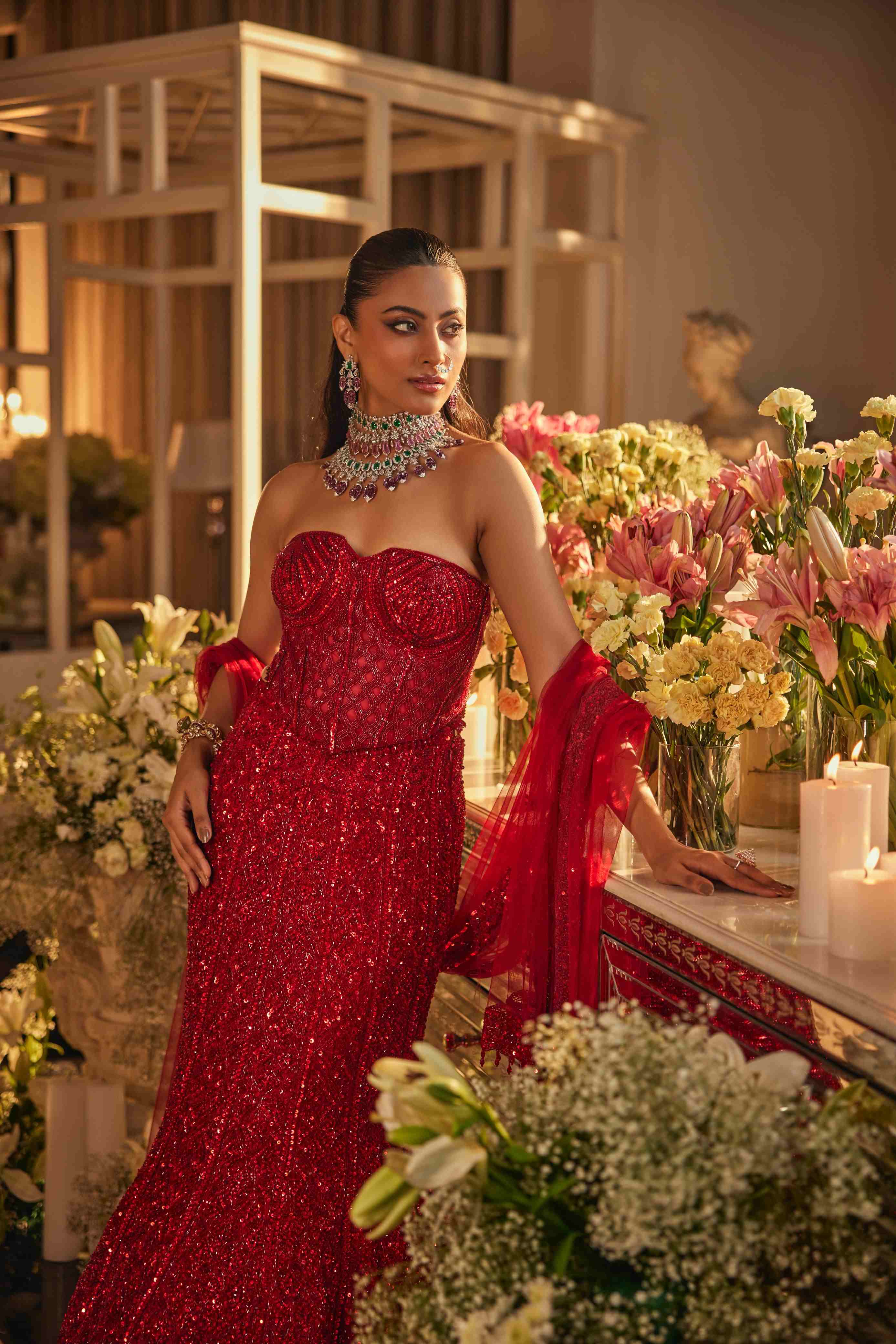 • Customisation : Each outfit is specially handcrafted for you by our team of artisans : one stitch, one bead at a time. We are happy to customize the colour, sleeves, neckline and size to your requirement.